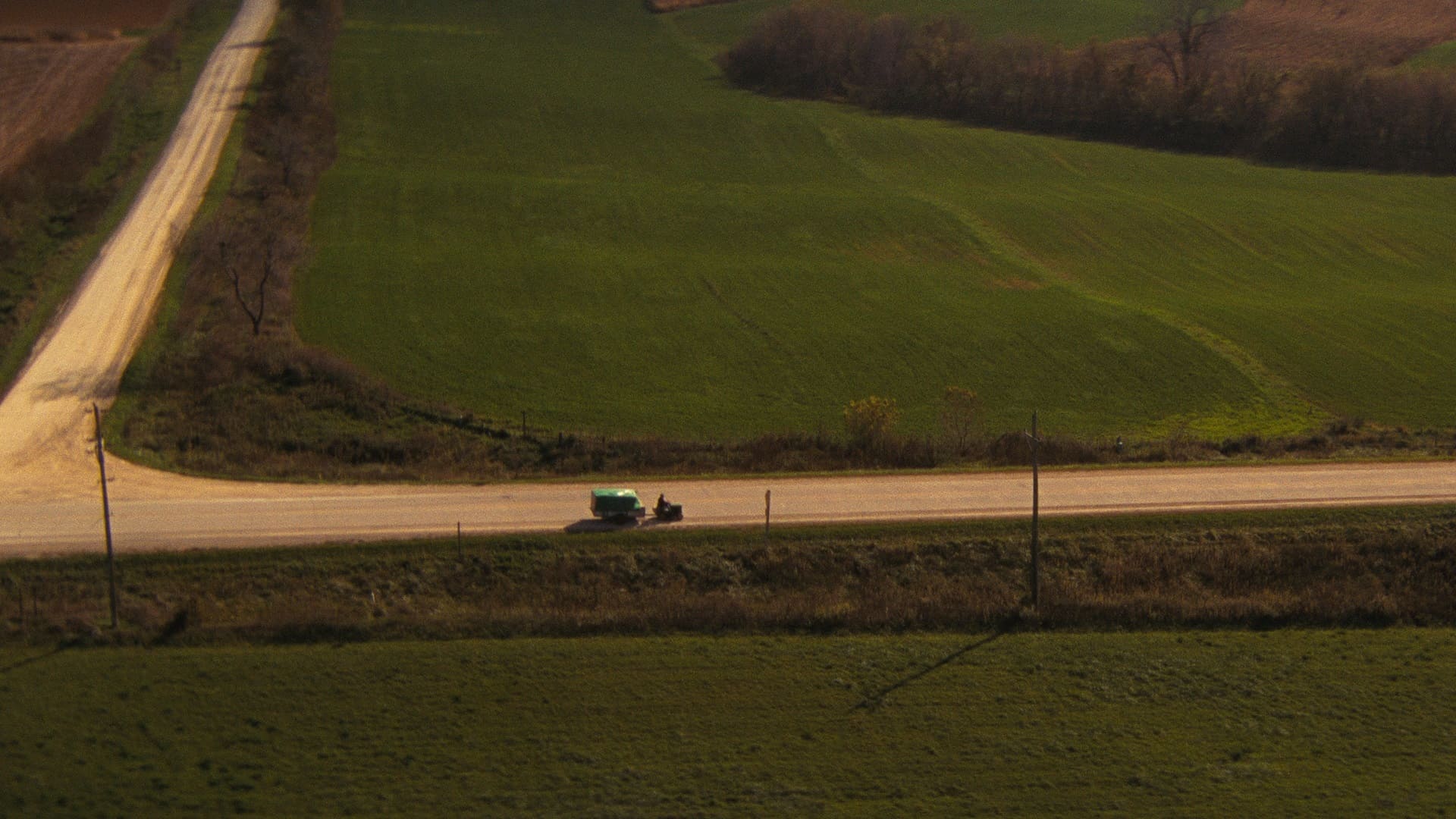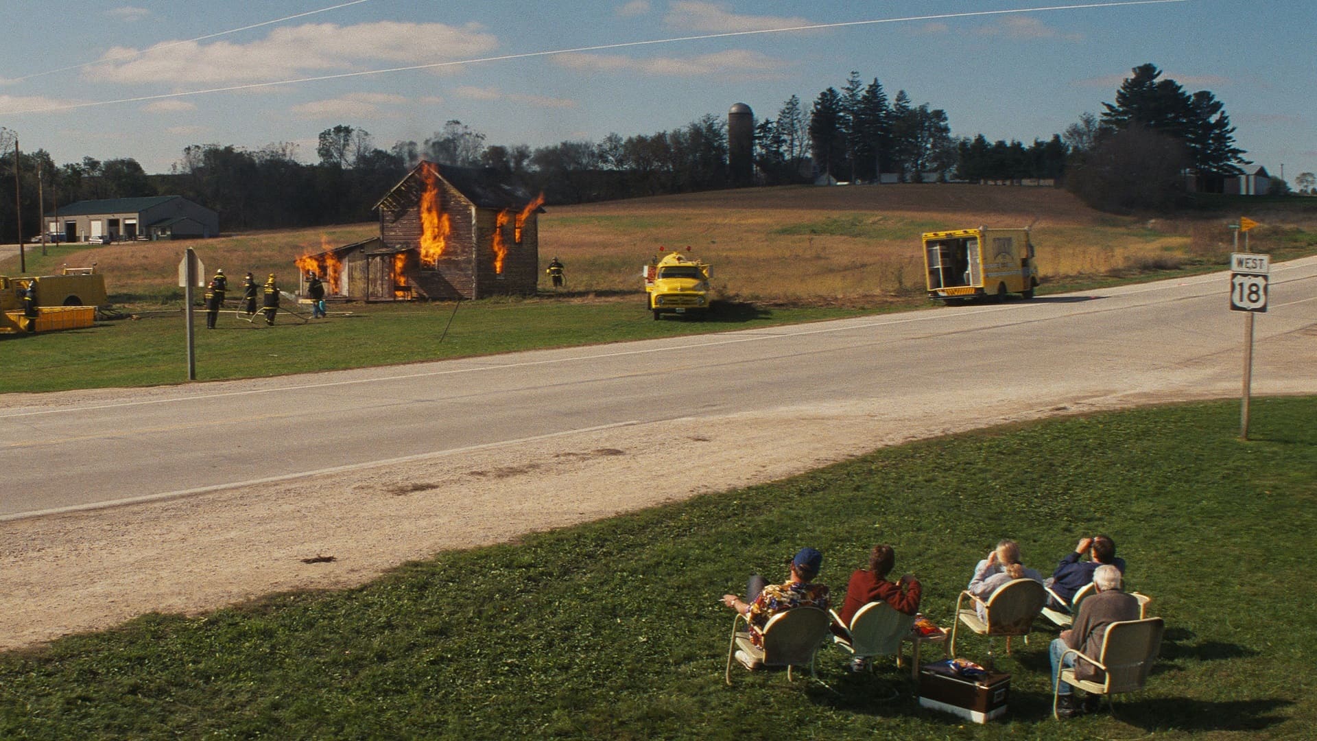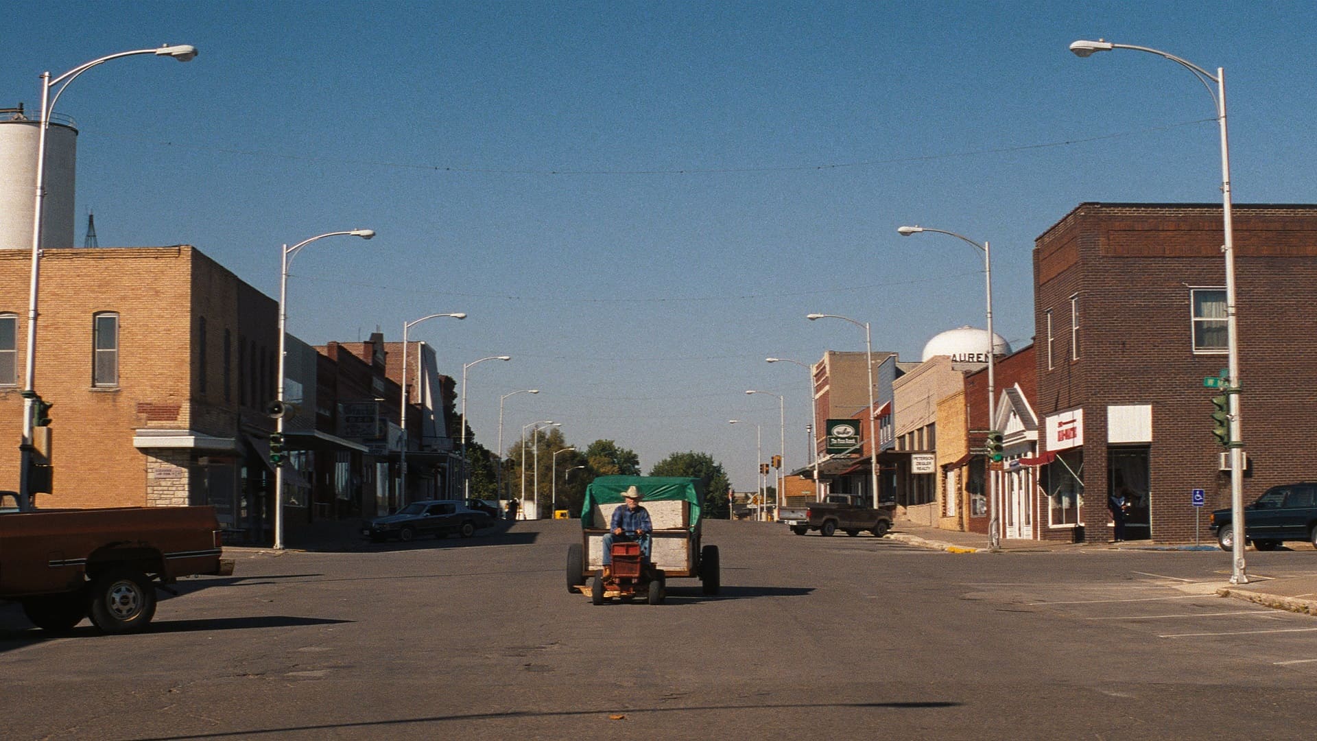 Линч не забывает об этой фактуре и в «Простой истории». Только теперь вместо жутких фабрик из «Головы-ластика» и «Человека-слона» и лесопилки из «Твин Пикса» взгляд Линча направлен на огромные фермы. Режиссёр упивается живописными кадрами сбора урожая на комбайне, но не забывает при этом и про фирменный саунд-дизайн. По пути к брату Элвин Стрейт (Ричард Фарнсуорт) преодолеет не одну гудящую станцию, которая словно вторглась в идиллическое пространство фильма, чтобы фамилия постановщика во время финальных титров не стала для зрителей сюрпризом.