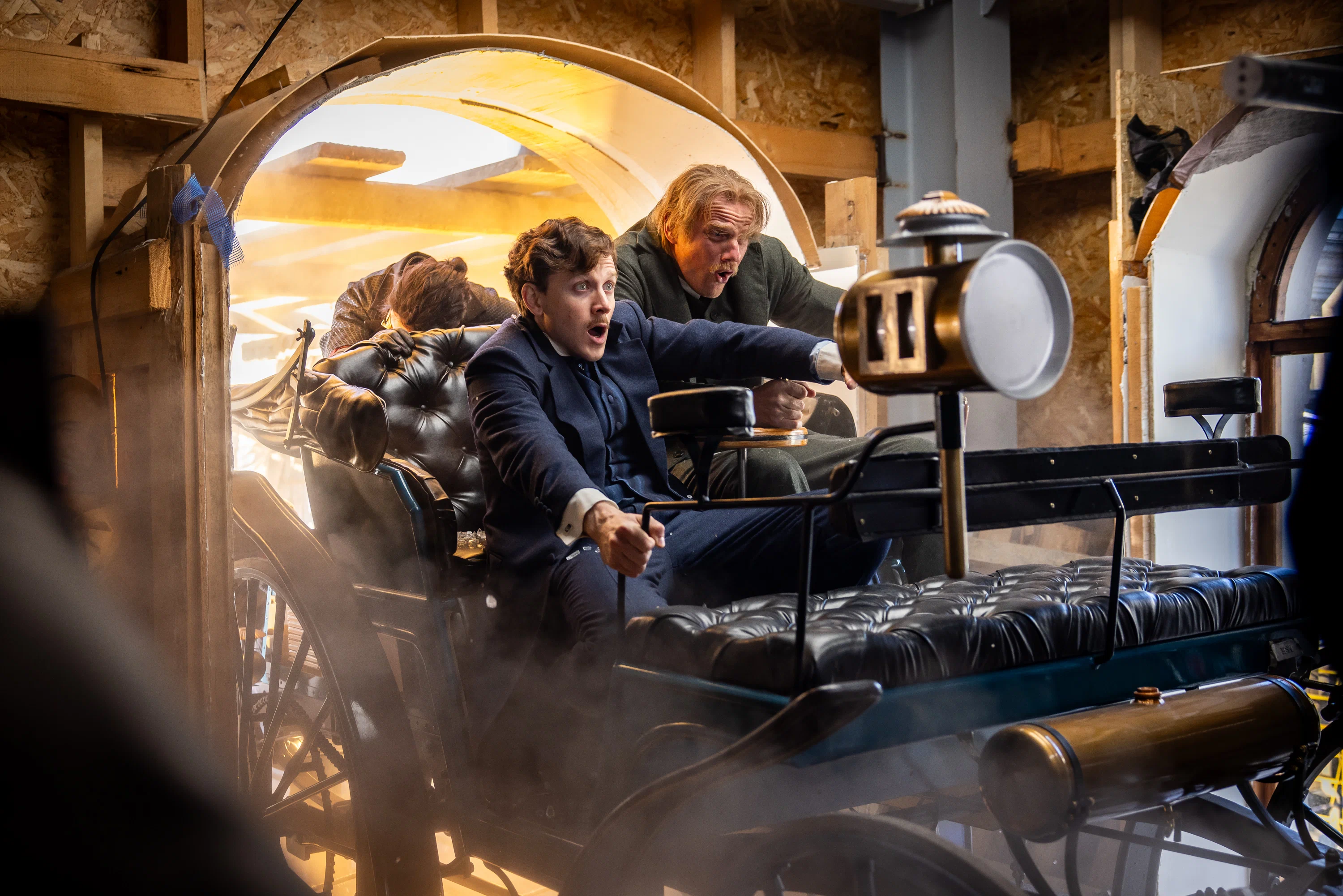 Где-то в уголке большого зала, ставшего складом для оборудования и декораций, сидит каллиграф и расписывает документы для сцен с императором. Рядом стоит украшенная ёлка. Чудеса тут и там — все рукотворные. Осветители обманули пасмурное питерское небо: в съёмочном зале в окно стучится искусственный солнечный свет. На стене — вручную нарисованная декорация с картой Российской империи, по периметру — вазы с цветами. А в углу притаился загадочный рюкзак изобретателя Левши.