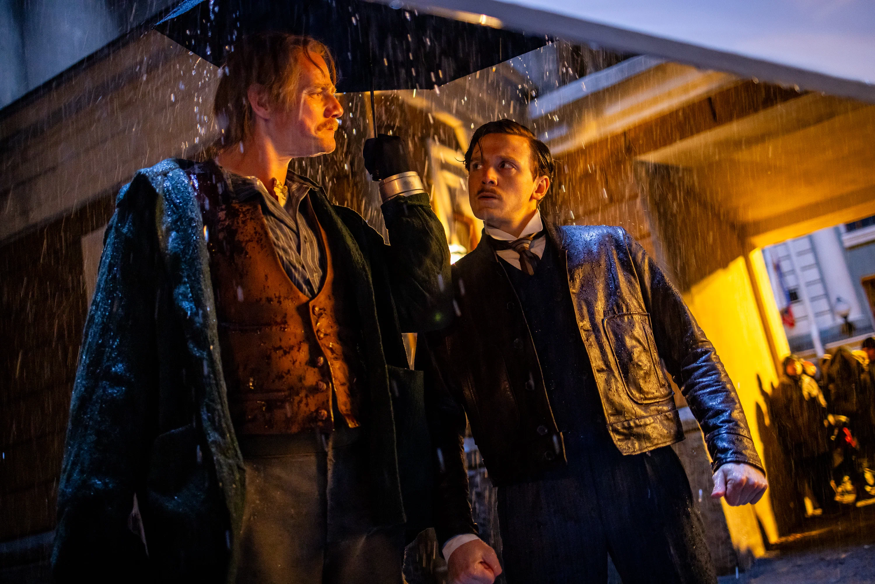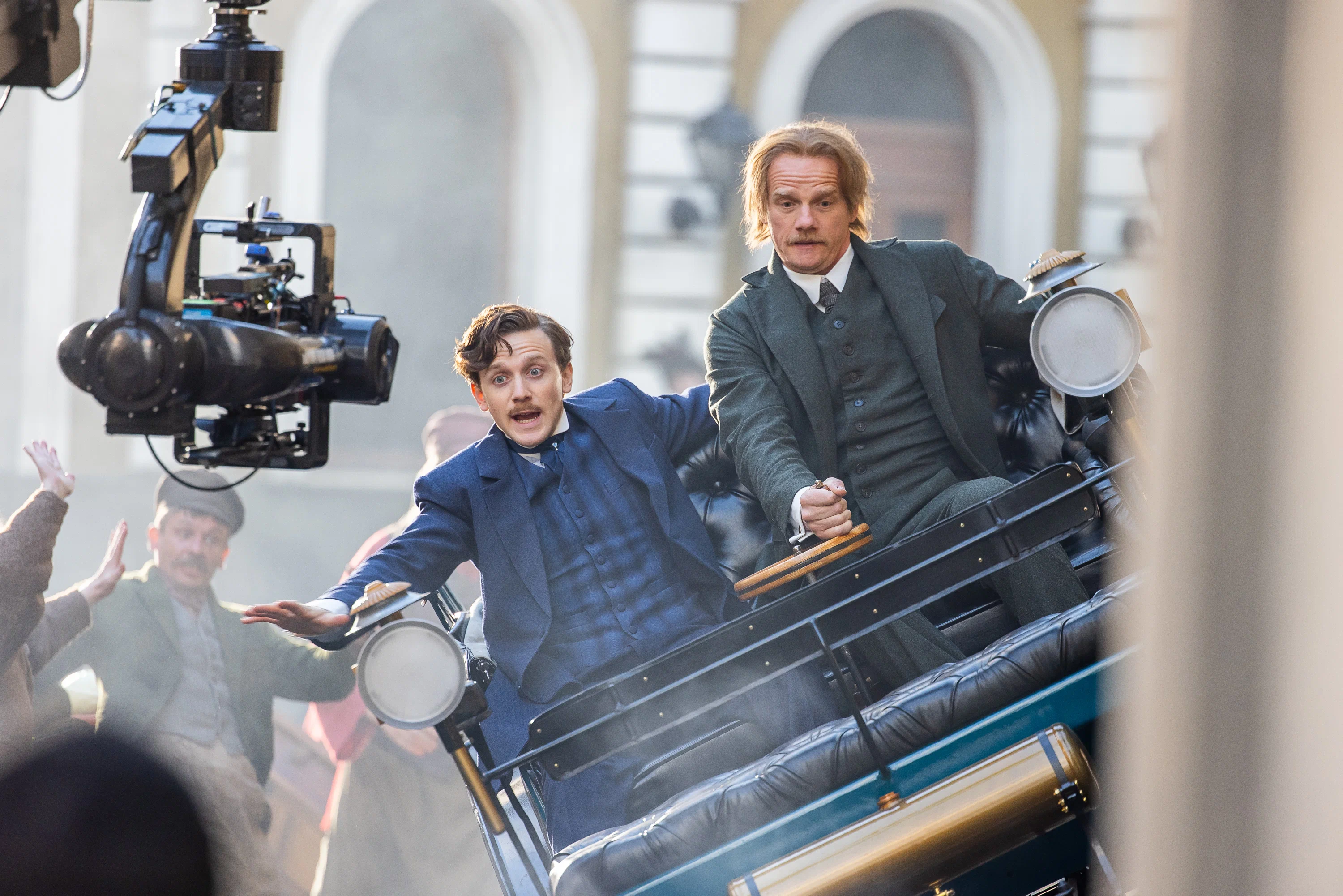 В кадре: Артур Иванов в образе Александра Третьего, Юрий Колокольников, играющий Левшу, Фёдор Федотов — офицер Огарёв, его дядя в лице Алексея Гуськова. И Ян Цапник — министр финансов.