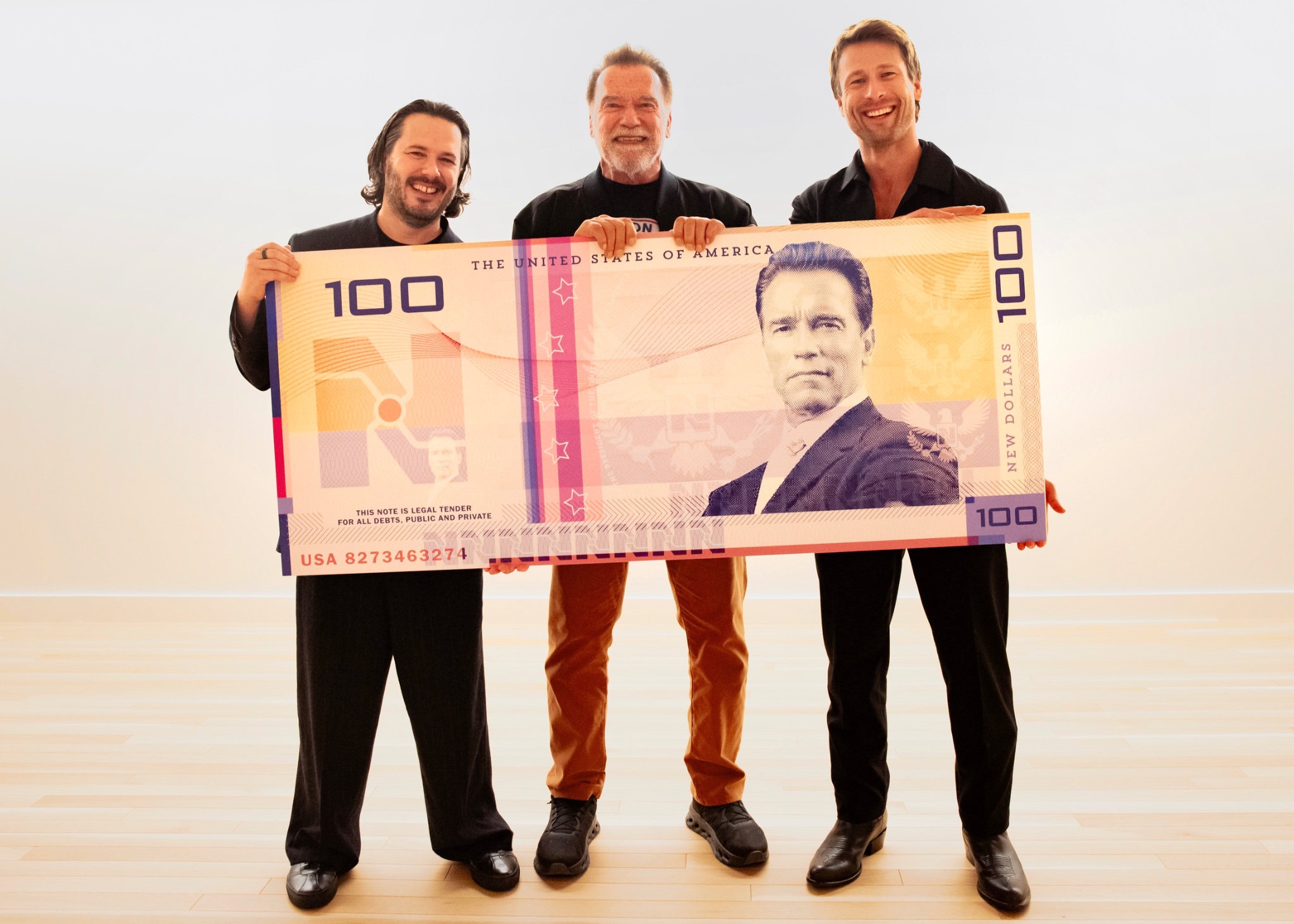 В завершение беседы Эдгар Райт и Глен Пауэлл вручили Шварценеггеру увеличенную копию той самой банкноты. В новом фильме главный герой, роль которого досталась Пауэллу, также носит имя Бен Ричардс. Чтобы заработать на лечение больной дочери, он становится участником жестокого телешоу, где его целью является продержаться 30 дней, уклоняясь от преследования наёмных убийц.