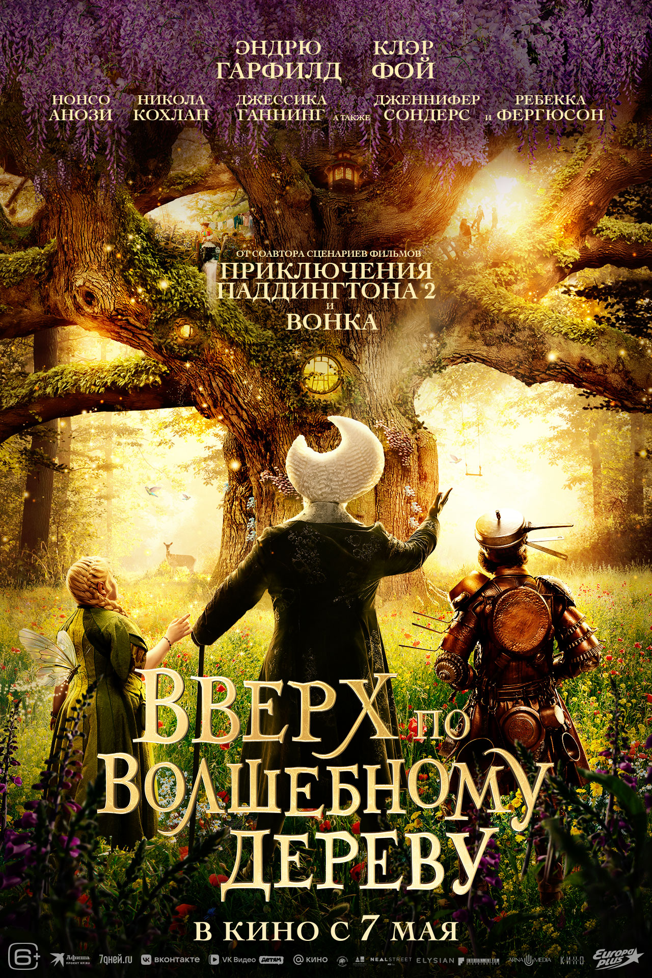 Кинокомпании «Атмосфера кино» и «Арна Медиа» выпустили дублированный трейлер картины «Вверх по волшебному дереву». Премьера семейного фэнтези в России намечена на 7 мая. Лента, известная в оригинале как The Magic Faraway Tree, повествует о лондонском семействе с тремя детьми, которое начинает новую жизнь в уединённой сельской местности. Вдали от городской суеты и технологий они находят необычное древо, становящееся порталом в зачарованные вселенные.