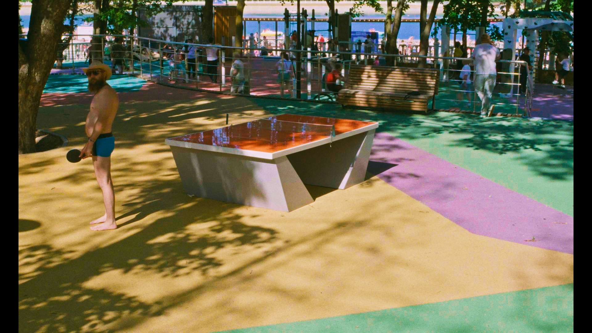 Героями документальных фильмов часто становятся не только люди, но и места. Например, магазин, мэрия или суд. Американский документалист Фредерик Вайсман часто исследует функционирование институций. А чем плох стол для игры в настольный теннис в парке в Кисловодске неподалёку от пляжа? Объект неподвижный, зато вокруг него жизнь кипит. У стола целуются, обнимаются, празднуют Новый год, говорят по телефону и жалуются на бывшую жену, на нём сидят и лежат, на него прыгают. Бетонную конструкцию с сеткой могли бы утащить на дачу, но, к счастью, сдвинуть махину почти нереально. Правда, судьба стола всё равно трагическая.