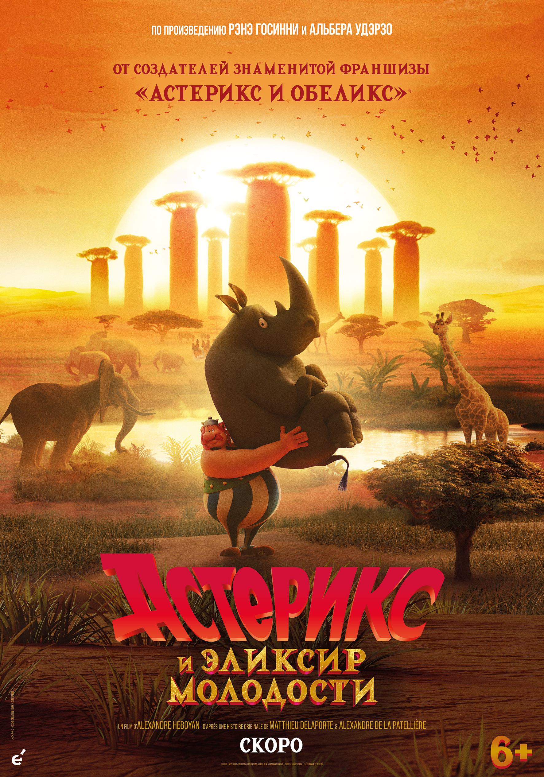 Кинокомпания «Экспонента фильм» организует всероссийский показ мультипликационной истории для зрителей любого возраста «Астерикс и эликсир молодости» (оригинальное название — Astérix et le Royaume de Nubie). Сроки выхода в прокат будут объявлены позже. Кристиан Клавье вернулся к голосу Астерикса в озвучании этого проекта.
